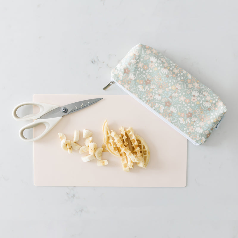 To use: Place placemat on table and use scissors to cut food onto it. After baby is done eating, wipe mat with a napkin or wipe, roll up, and stick it in the zipper tote. When you get home, rinse with warm soapy water or place in the top rack of the dishwasher.
